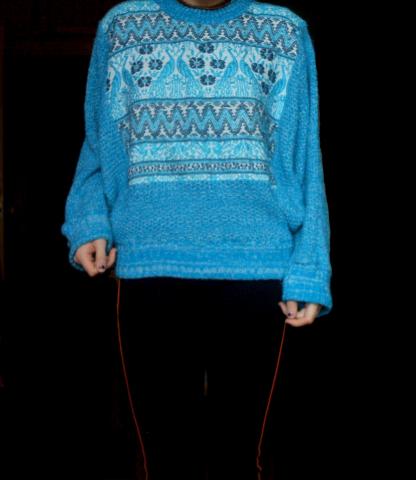 Melsvas megztinis su povais