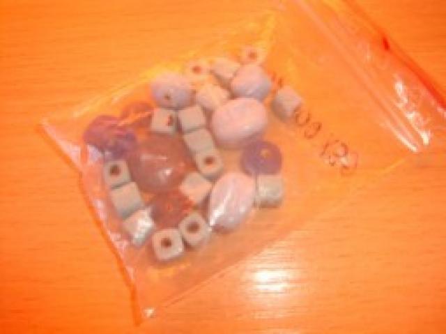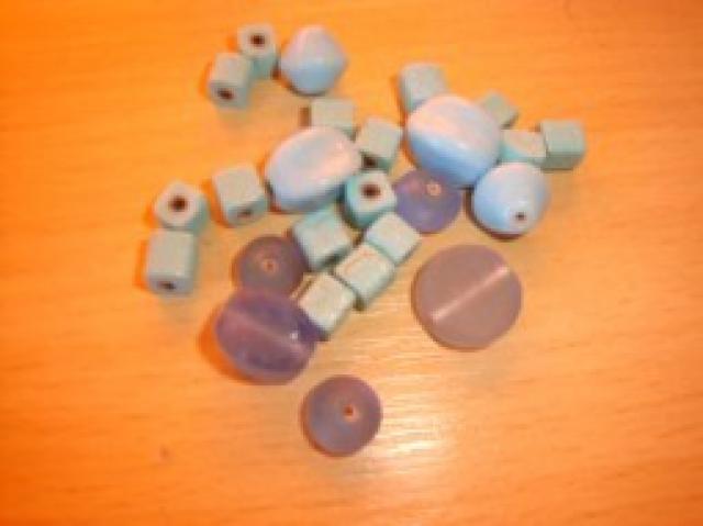 Melsvų atspalvių karoliukai.