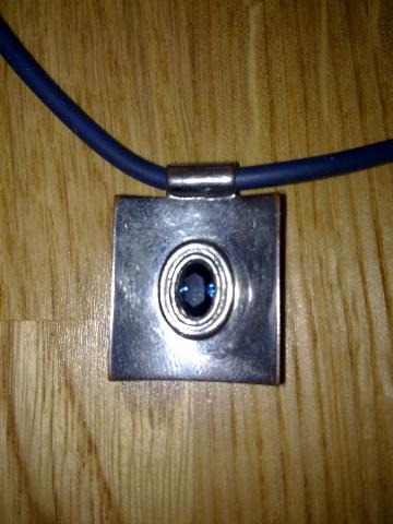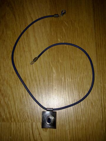 Mėlynos spalvos grandinėlė ir pakabukas su akmenuku. Labai gražiai žiūrisi