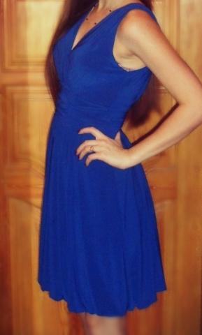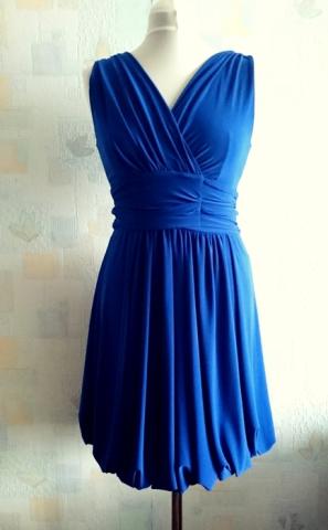 Mėlyna ir ryški proginė suknelė