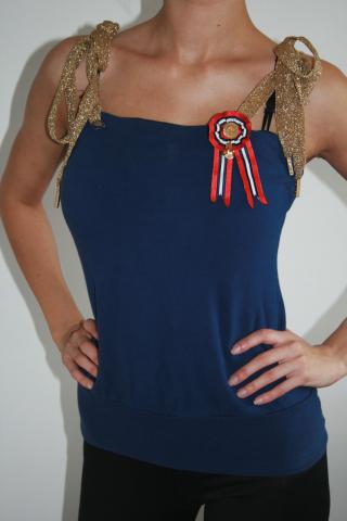 Mėlyna, šilta(kokybiška) maikutė su auksiniais batraisčiais a la petnešėlėmis.