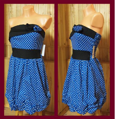 Mėlyna suknelė su baltomis širdutėmis, Ilgis - 68cm. dydis S/M