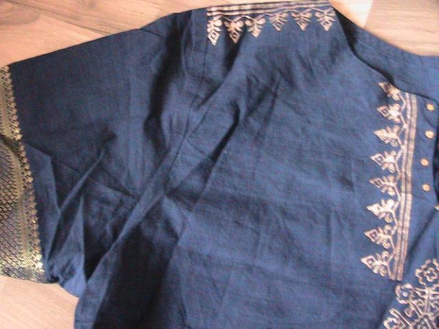 tamsiai mėlyna tunika, su raštais, universalus dydis.