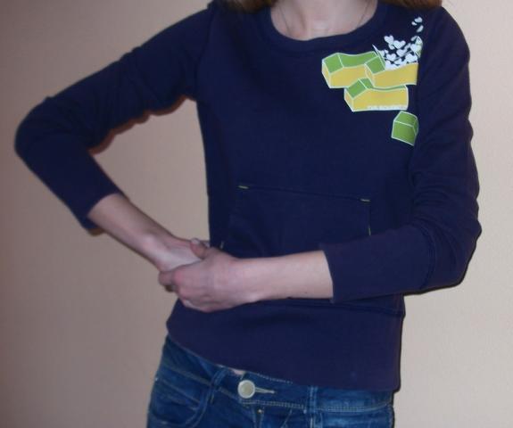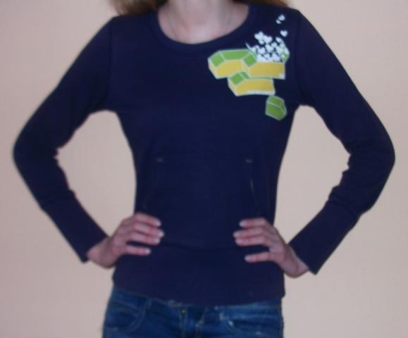 Mėlynos spalvos bliuzonas ilgomis rankovėmis su ryškiomis detalėmis. Gera būklė, ne naujas. NEMAINAU.