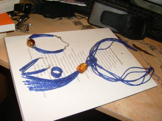 Auskarai, apyranke, ziedas ir grandinele.