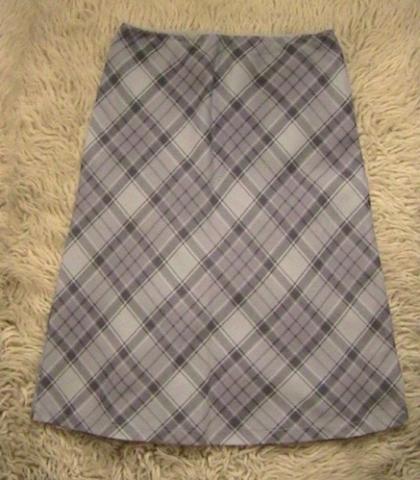 Platėjantis, mėlynas ir languotas! Viršuje yra tokia kaip gumelė, tai jeigu sustorėsit, nebus parkių. Šitas sijonas galėtų būti vintage, bet tai atvira interpretacijoms :)