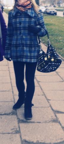 Labai grazus lengvutis melynas paltukas, rudens-pavasario sezonui. Pirktas uzsienyje, mazai nesiotas, taigi puikios bukles. Raso,kad tinka dydziui L, bet nuotraukos darytos s nesiojancios, taigi tinka s-m