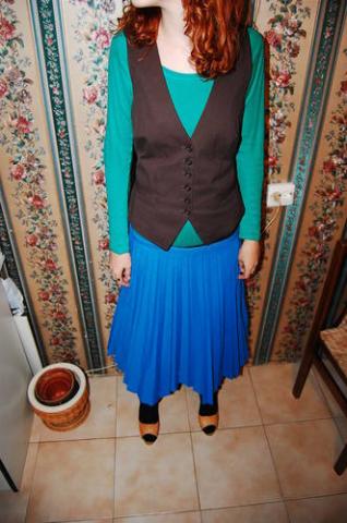 vintazhinis melynas klostuots sijonas zemiau keliu, labai grazus, dydis tarp 36-38, tinka ir 34tam:)