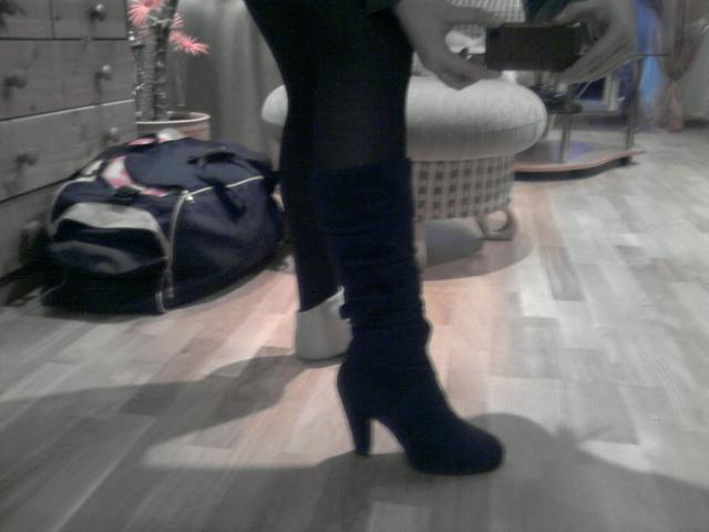 kelis kart uzsideta, nuotraukos prastos labai telefonu fotkinau. tamsiai melyni batai tinka beveik prie visko, vaikinai sako, kad gražiai atrodo, peda pakelta, tai patogu vaiksciot, koja nepavargsta :)