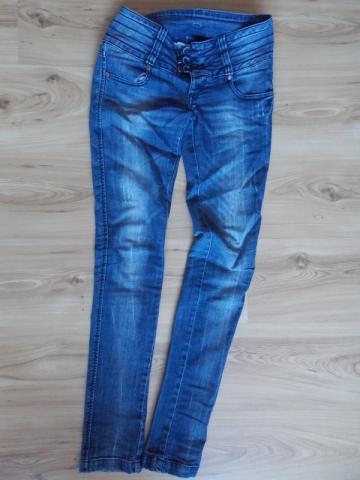 Mėlyni mažai dėvėti apiplėšyti siaurėjantys džinsai