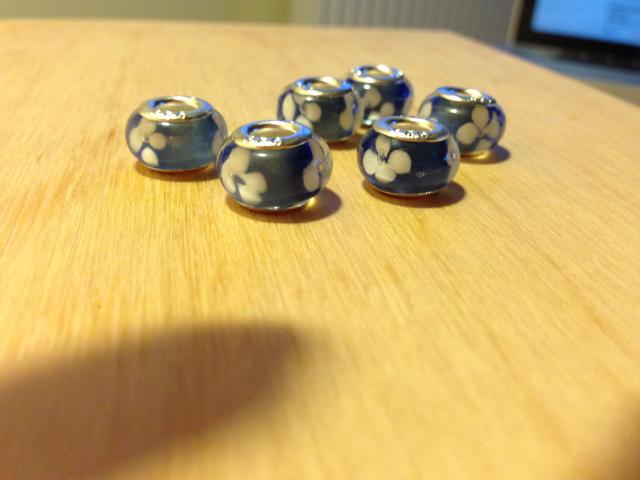 Mėlyni gėlėti Murano stiklo karoliukai