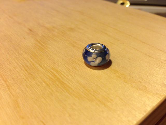 *mielas ir gražus karoliukas; *diametras: 13-14mm; *storis: 8mm; *viduriuko vidinis diametras: 5mm; Sudėtis: Murano stiklas; 925 sidabras;