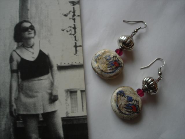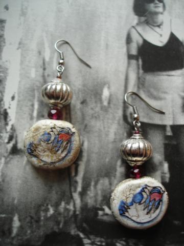 Rankų darbo detalės, autoriniai piešiniai, karoliukai. Antialerginiai kabliukai