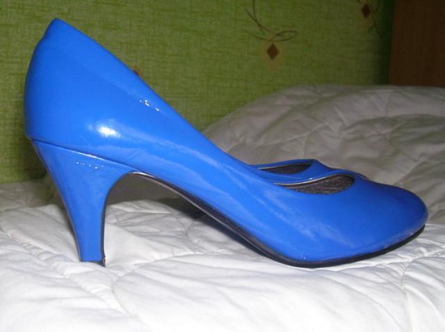 Mėlyni , ryškūs , lakuoti bateliai