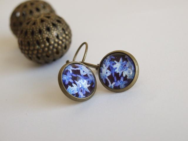 Auskariukai padaryti naudojant Collagen'o techniką. Auskariukų piešinėlis - tai paveikslėlis perkeltas ant fotopopieriaus ir uždengtas permatomu kabošonu. Auskariukų užsegimas sendinto žalvario spalvos.