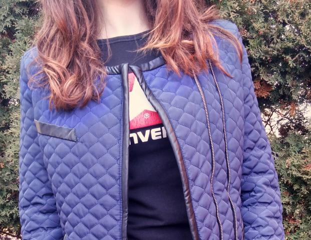 Mėlynos spalvos pavasarinė striukė. Lengva, graži ir stilinga