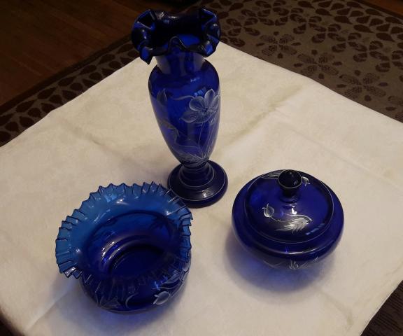 Parduodu trijų mėlyno organinio stiklo vazų komplektą. (Viena aukšta vaza, žemesnė ir saldaininė su dangteliu). Naujos, gražios. Visų kartu kaina 15eur.