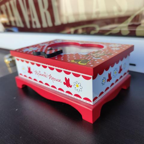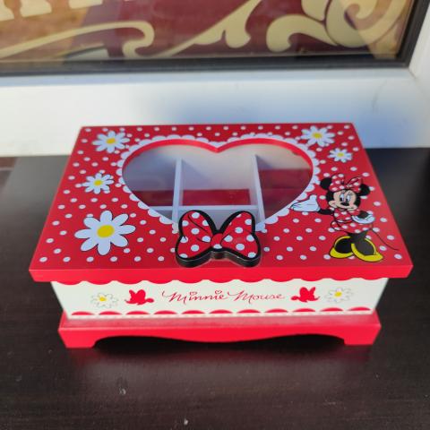 Mergaitiška medinė papuošalų dėžutė Minnie Mouse.