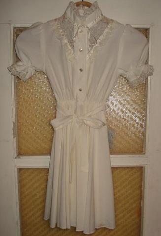 mergaitiska pieno spalvos klostuota suknele.. 5-6 metu amziui (tikiuosi neklystu)
