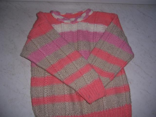 Ranku darbo mergaitiskas megztinukas, labai grazios ir siltos spalvos. Labai minksti ir svelnus siulai. Mergaitei 10-11 metu...