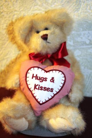 mielas meskiukas su sirdeles formos pagalvele ant kurios yra uzrasas "hugs & kisses", tinka valentino dienos progai