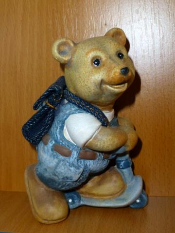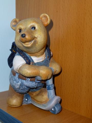 Meškiukas su kuprine ant dviratuko. Išmatavimai-13*8cm