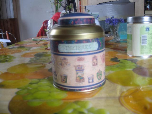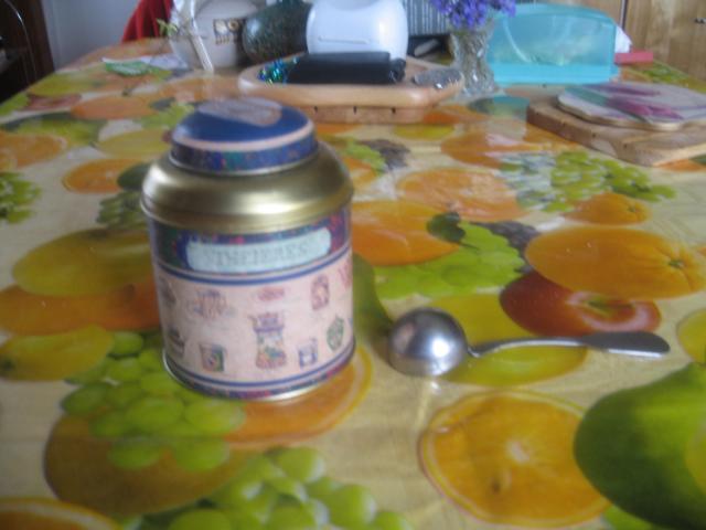 Metalinė arbatos dėžutė ir šaukštas kavai