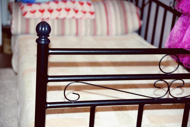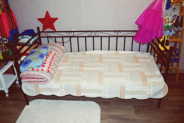 Puikus metalinis lovos rėmas,dalys suvirintos tarpusavyje,kitos suveržtos varštais, tedėl lengva ją išmontuot,pervežti. 90x200