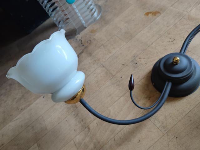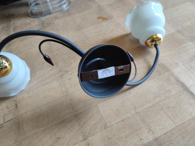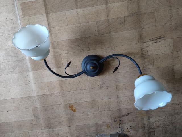 Metalinis dviejų lempų šviestuvas stikliniais gaubtais.