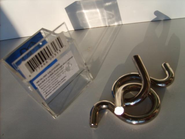 Smagus metalinis galvosūkis iš dviejų dalių su plastmasine dėžute. Užduotis - atskirti dvi sujungtas dalis.
