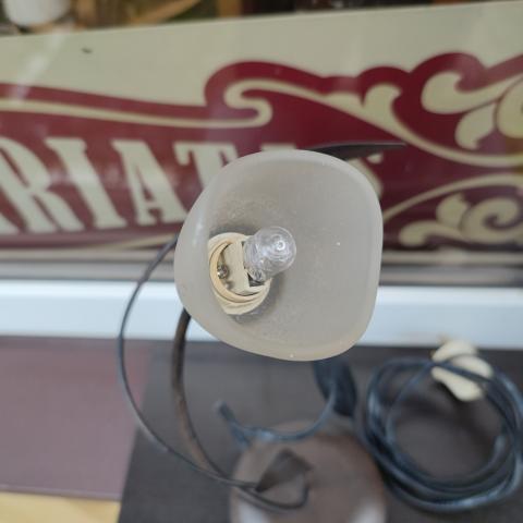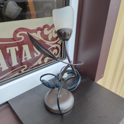 Metalinis stalinis šviestuvas stikliniu gaubtuku.