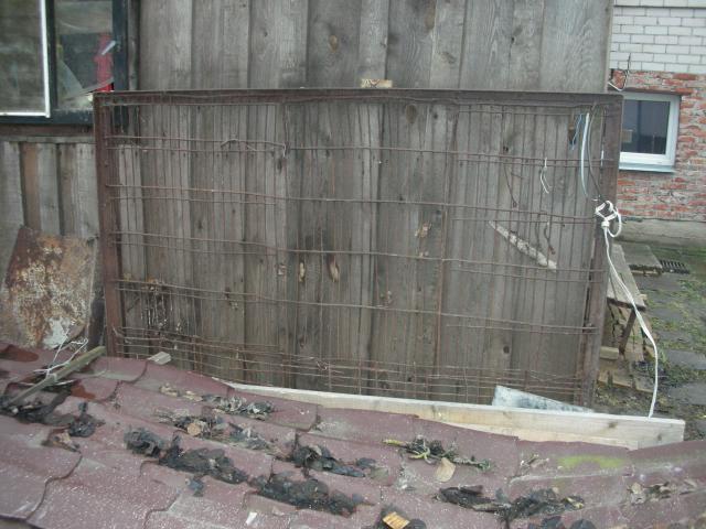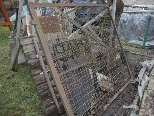 2 dalių vartų varčios su vyriais , 1 dalies išmatavimai aukštis 1,54 m, ilgis 1,92 m, abiejų dalių kaina 39 eur.