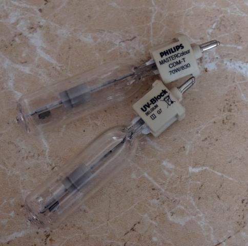 Po 3eu uz vnt. Philips MASTERColour CDM-T 70W 830 Metalo halogeno lempos.