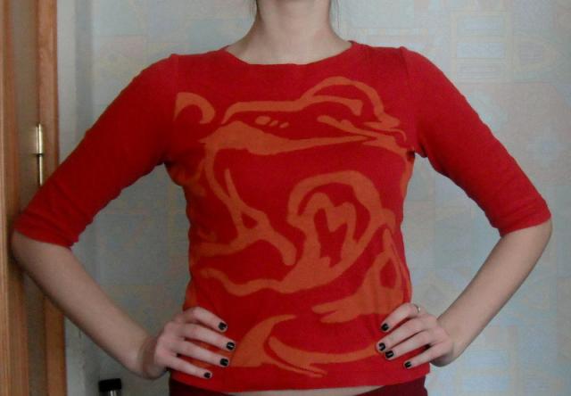 nenauja, raudona palaidinė, tačiaube defektų, nenuskalbta. 3/4 rankovės