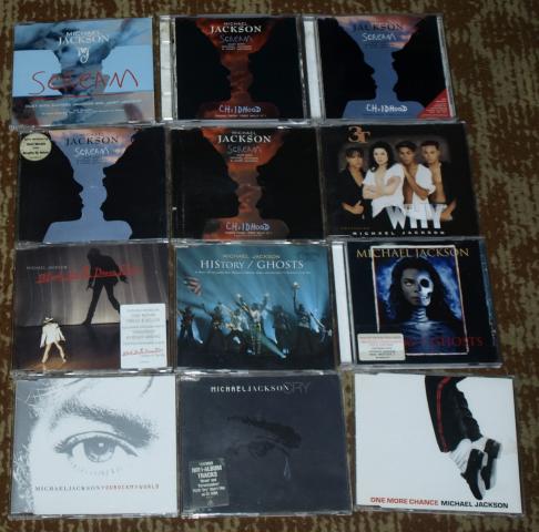 Michael'o Jackson'o singlai (CD) - pardavimai turiu keletą: 5 skirtingus Scream singlus; 1 Why singlą; 2 skirtingus HIStory/Ghosts singlus; 1 You Rock My World singlą; 1 Cry singlą; 1 Blood on the Dance Floor singlą.