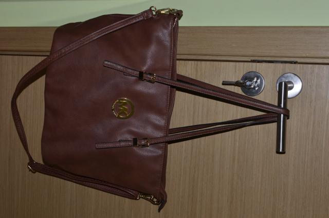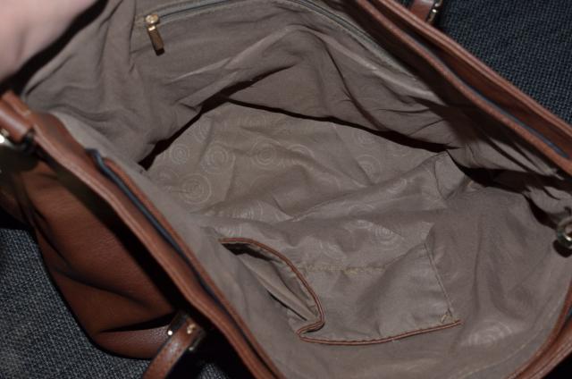 Nuostabi, stilinga, talpi, ismatavimai 43x28 cm, puikios bukles, rankines, minkstute eco oda atrodo lyg naturali, spalvyte - ruda, detales - auksines, yra ilgoji rankena, itin patogus vidus, daug skyreliu, be defektu. Siusta is amazon svetaines. Moketa labai brangiai