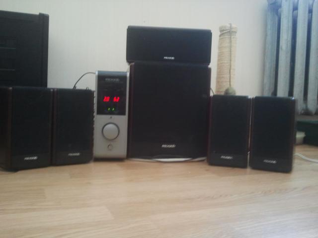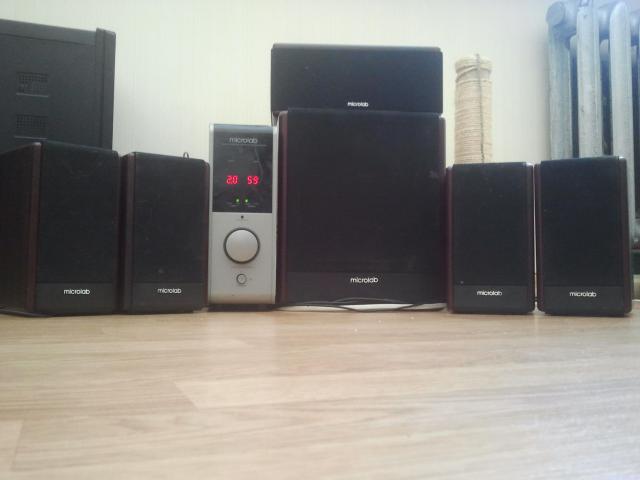 Gera Microlab multimedia audio 5:1 namu garso aparatura . Puikiai bei svariai groja , geros bukles . Papildomai yra ir pultelis nustatymams . Su rimtu pirkeju kaina galima butu ir paderinti , domina ir ivairus keitimo variantai . Skambinti arba rasyti i +37064778070