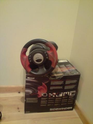 Žaidimų vairas su force feedback, su dėže, labai smagu žaist lenktyninius žaidimus.