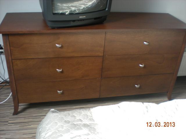 labai grazus ir kokybiskas miegamojo komplektas,lova ,is sonu komodeles,didele komoda ir veidrodis. galimas pardavimas ir atskirai.del kainos teiraukites