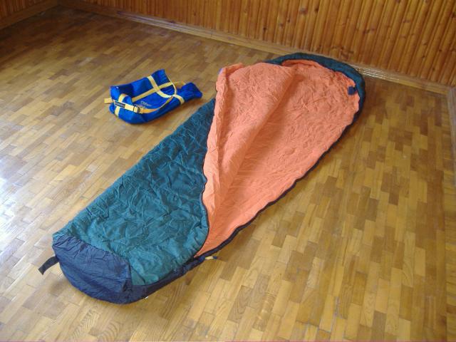 Viena karta buvom pasieme i turistini. Matmenys : 2,22x80 cm. Tilps labai auksto ugio zmogus. isorinis audinys - neilonas; vidinid audinys - 100% medvilne ; uzpildas - 100% polyestr. Skalbti 60 laipsniu temperaturos vandenyje. Yra uztrauktuku uztraukiama kisenele (4-a foto)