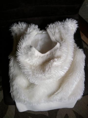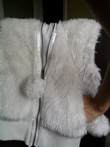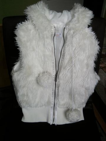 Kailinė liemenė, baltos spalvos, su kapišonu,kišenėmis, kapišoną galima susiveržti mielais bumbuliukais, dydis s,