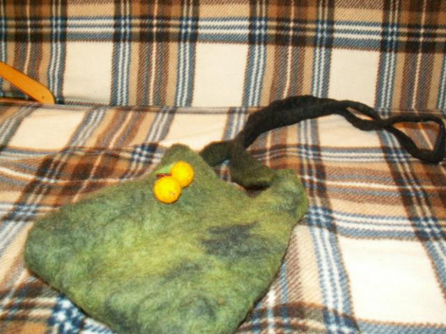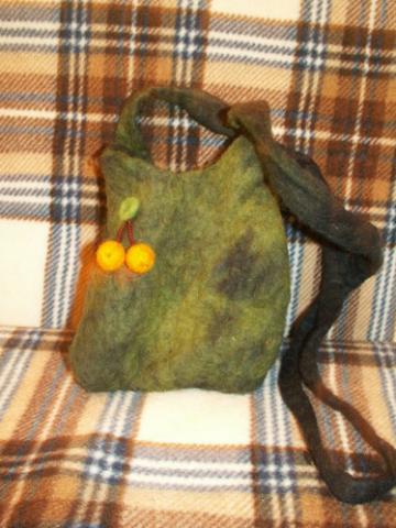 is veltinio nuveltas žaliai mėlynas krepšelis akcentas 2oranžinės vyšnios:)
