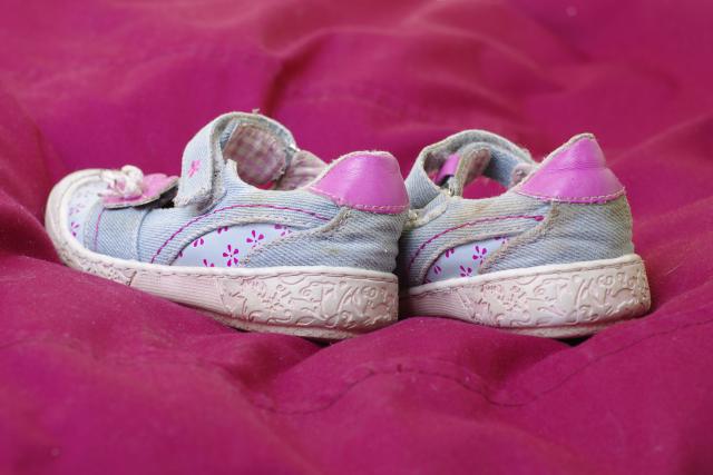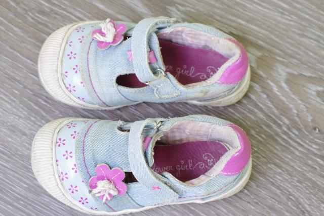 Nors ir patrinti, bet labai jau mieli, gal kokiai princesei tiktų dar sezoną atbegioti :) Priekyje guminės apsaugos, patys batukai tekstilės, vidpadis odinis, užkulnis pakietintas. Nešiojasi ir žiūrisi nuostabiai :)