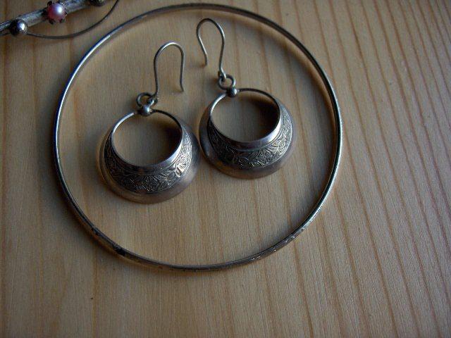 pati sidabravau auskarus,senovine sage, sovietmecio auskarai ir apyranke ,keramikine ir medine sages