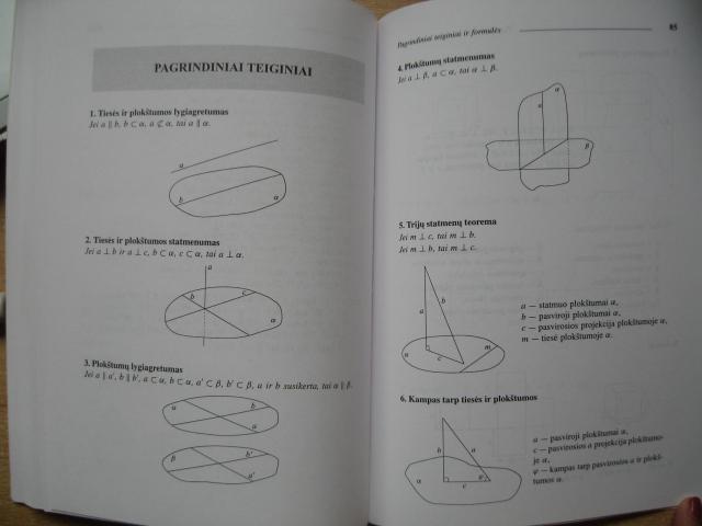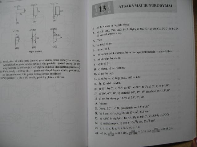 Tai pratybos/vadovėlis. Prie kiekvienos temos(skyriaus) pradžioje yra sąvokų, geometrinių figūrų paaiškinimas iš teorinės pusės, po to seka uždaviniai. Gale pratybų yra atsakymai ir susistemintas, sutraukti pagrindiniai teiginiai ir formulės visų geometrinių figūrų. Pratybos puikios būklės, visiškai neprirašinėtos :)