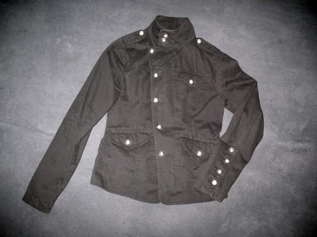 Spalva nėra tokia nublukusi, taip atrodo dėl blykstės. Sagos ne visur vienodos: rankovių paskutinės ir antpečių sagos skirias nuo visų kitų, bet taip jau buvo, kai pirgau, tai spėju, kad specialiai. Labai faina, bet per daug turiu striukų ir šita kažkaip negauna išlysti į šviesą.