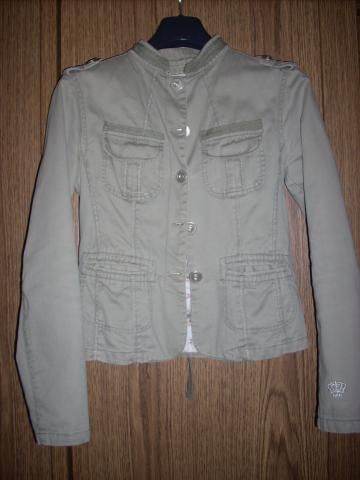 Militaristinio stiliaus švarkėlis. Mažai nešiotas. Šiek tiek storesnis, todėl tinka šaltesnei vasaros dienai:) 35 lt