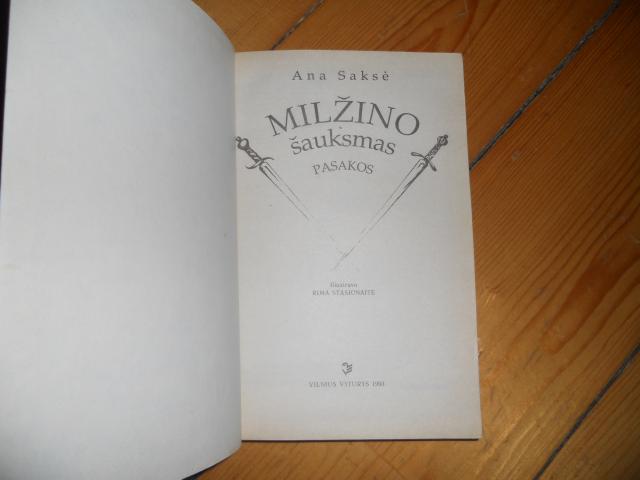 Milzino sauksmas, A. Sakse, pasakos, 1993, iliustravo R. Stasiunaite, viduj prie virselio kiek paplysusi