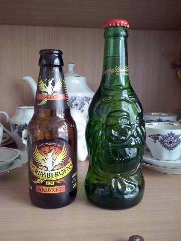 Mažas alaus buteliukas, forminis stiklas, buda. yra vienas tuščias ir vienas pilnas. yra ir aromatinio alaus miniukas :)