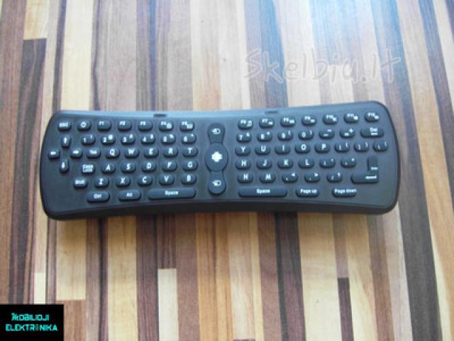 Parduodama nauja mini klaviatūra ir pelė viename. Labai patogi su daug funkcijų. Suderinama tiek su android tiek su windows operacininėmis sistemomis. Tinkanti kompiuteriui, planšetiniams, smart tv, tv projektoriams arba tv box. Palaiko 2.4 GHz. Dedasi trys AAA baterijos (nekomplektuojamos). Parametrai: 2.4GHz DSSS radijo siųstuvas, 10 metrų maksimalus atstumas. Spalva: juoda. Klaviatūra: QWERTY Baterija: 3 aaa (nekomplektuojamos) Palaikomos OS: Win8/Win7/XP/Vista Android 2.2/2.3/4.03/4.1 L